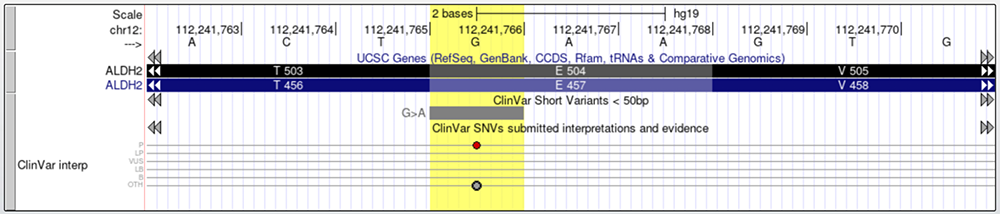 https://genome.ucsc.edu/s/education/hg19_ALDH2clinvar